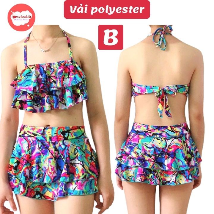 Giới thiệu Đồ bơi hai mảnh cho bé gái từ 35-45kg - chất vải polyester - Tomchuakids