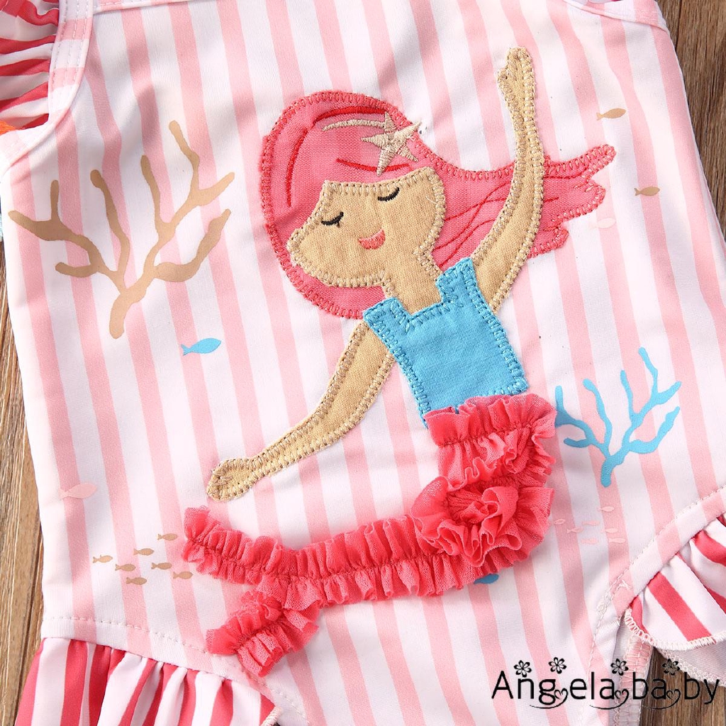 Thiết kế: Bộ đồ tắm thiết kế viền bèo, tua rua, kẻ sọc, họa tiết nàng tiên cá dễ thương, ngọt ngào và thiết kế không tay. Là một bộ đồ bơi hoàn hảo cho mùa hè và bơi lội. Hãy để bạn gái trông xinh xắn, thời trang và dễ thương.