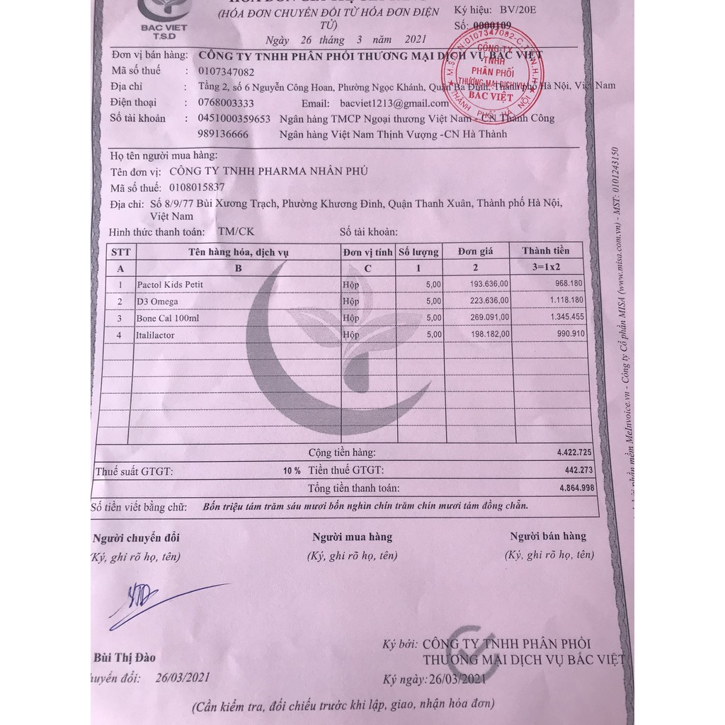 * THÀNH PHẦN TRONG 5ml: – Vitamin D3: 5 mcg – Vitamin K2: 10 mcg – Calcium gluconate: 500 mg tương ứng Calcium: 45mg