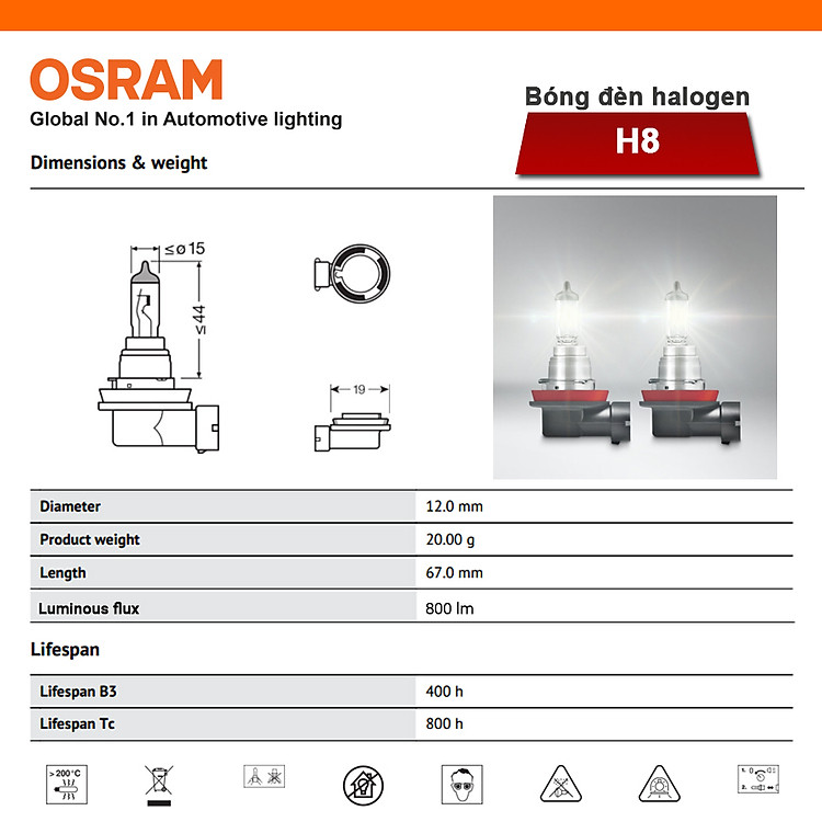 Hướng dẫn sử dụng và bảo quản Bóng Đèn Halogen OSRAM Original H8 64212-CLC 12V 35W