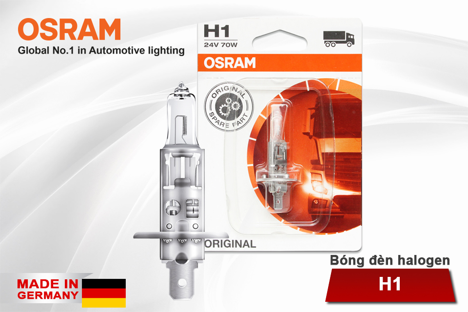 - Bóng đèn halogen OSRAM ORIGINAL H1 24v 70w được chế tạo bằng thủy tinh cao cấp đạt tuổi thọ sử dụng cao giúp hỗ trợ chiếu sáng hiệu quả trên những chặng đường dài