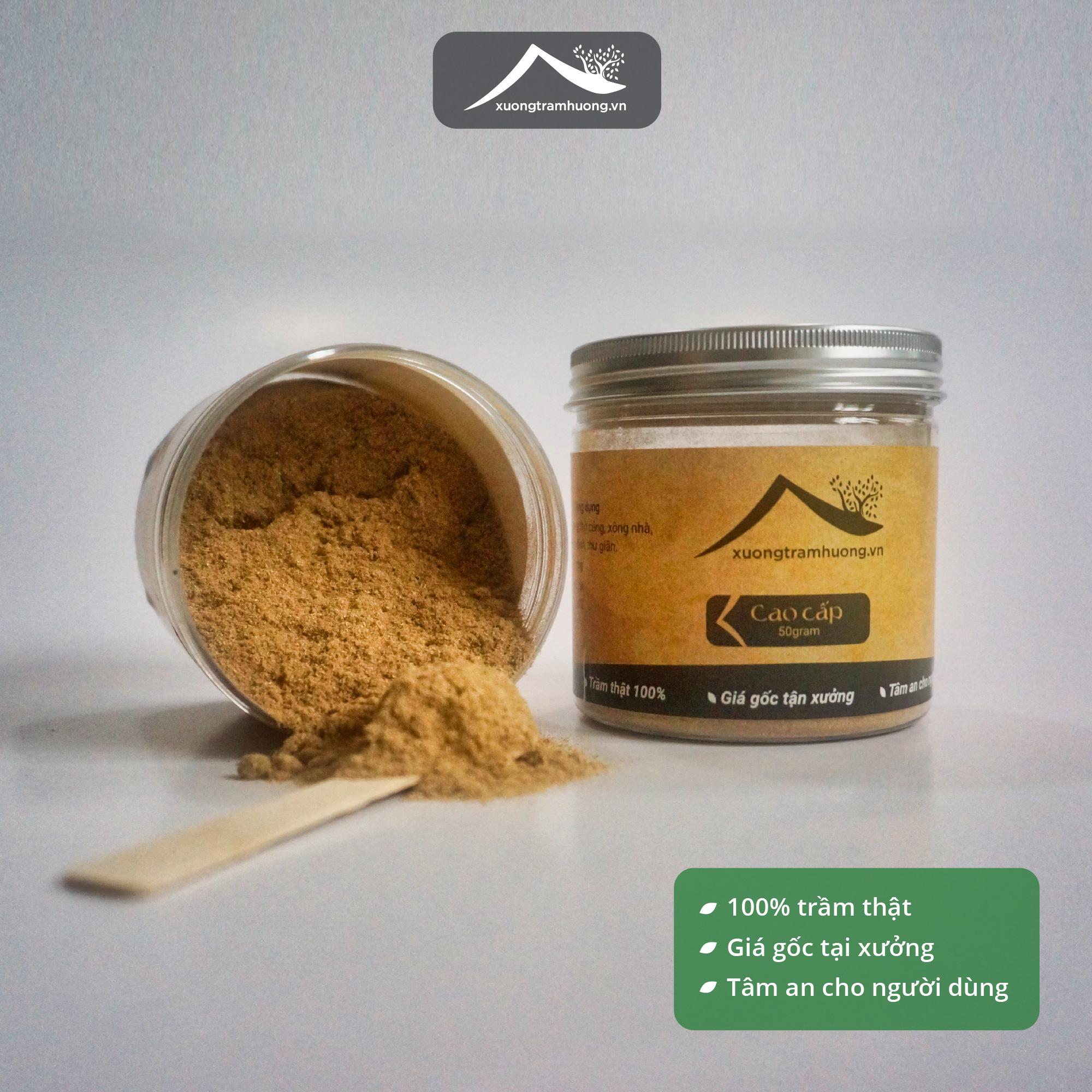 Các sản phẩm bột trầm hương mang lại trải nghiệm trầm nguyên bản, thuần mộc tốt nhất cho người dùng từng trải nghiệm qua các sản phẩm trầm khác (nhang, nụ). Bột trầm hương cao cấp của xưởng được làm từ vụn xỉa/ miếng từ cây dó 7-15 năm tuổi (trầm tốc) đem nghiền thành bột mịn, lượng tinh dầu vừa phải cho hương thơm dịu, nhẹ, khói ít, dùng xông đốt thông dụng trong gia đình hay dịp cúng bái giỗ chạp, khai trương nhà xưởng, xí nghiệp, văn phòng.