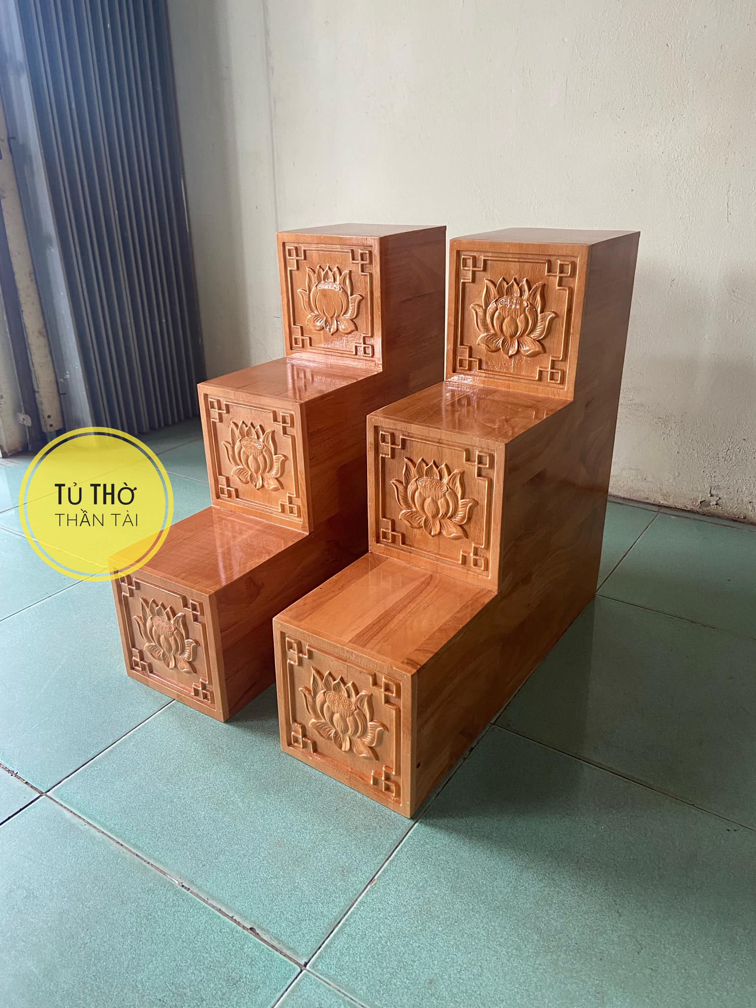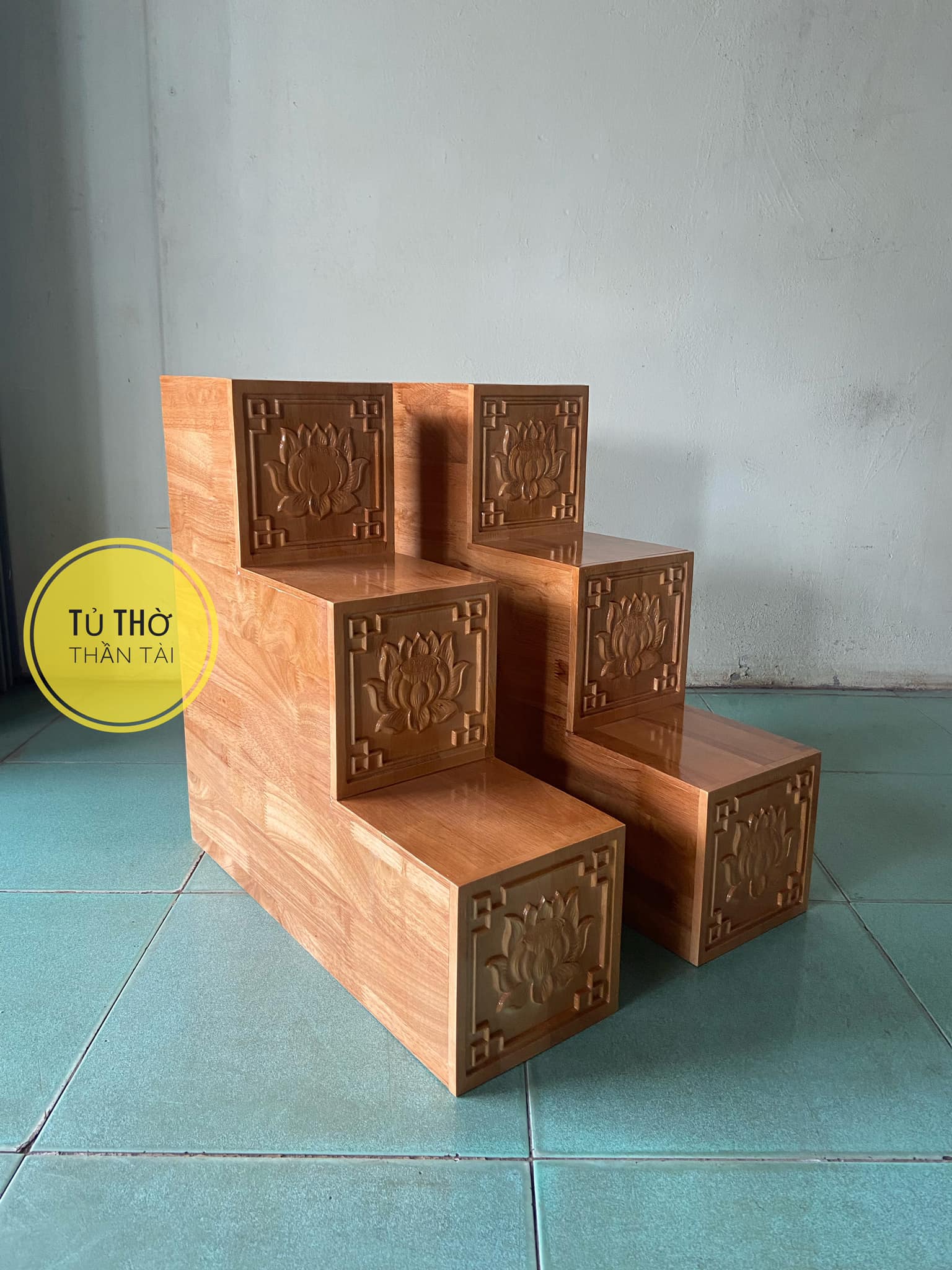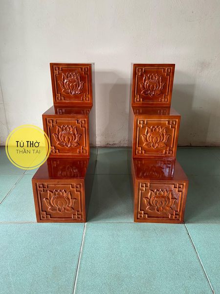 Bục tam cấp bàn thờ thần tài khắc Hoa Sen ( Hàng loại 1 dày dặn và cứng cáp )