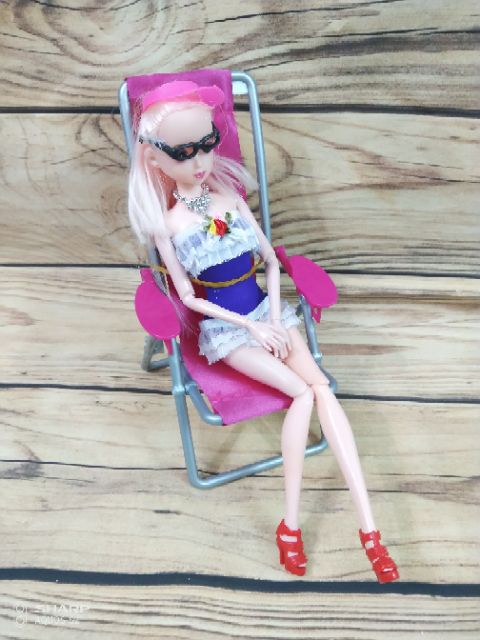 - 1 búp bê khớp cao 30cm có áo tắm, giày, nón và kính.
