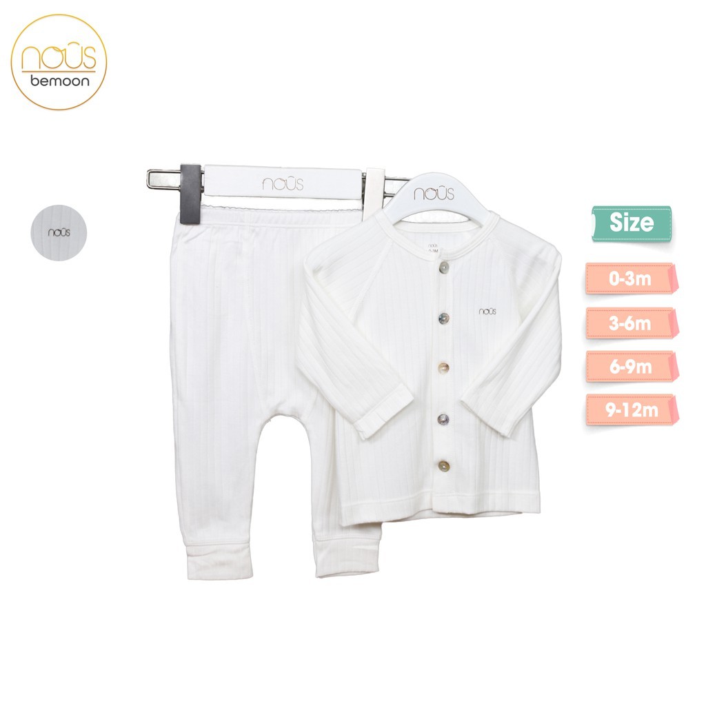 Giới thiệu Bộ quần áo cài thẳng dài Nous doux trắng sọc (0-12M)