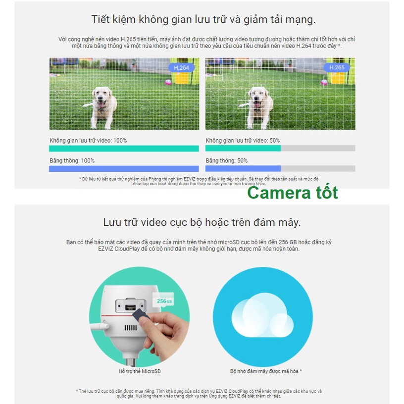 Camera 3MP wifi ngoài trời có màu ban đêm C3TN Chip hình ảnh 1/2.7" Progressive Scan CMOS ống kính 2.8 mm @ F2.0, góc nhìn: 109° (Horizontal),126°(Diagonal) Chống ngược sáng DWDR Chuẩn nén H.265 tiết kiệm băng thông lưu trữ Độ phân giải 2304x1296 Hỗ trợ khe cắm MicroSD card (Max. 256 GB) Hỗ trợ hồng ngoại ban đêm và đèn led Hỗ trợ đèn còi báo động Wi-Fi Standard 802.11b, 802.11g, 802.11n Nguồn: DC 12V/1A Chuẩn IP67 Hỗ trợ đàm thoại 2 chiều ✅Camera EZVIZ C3N 1080P