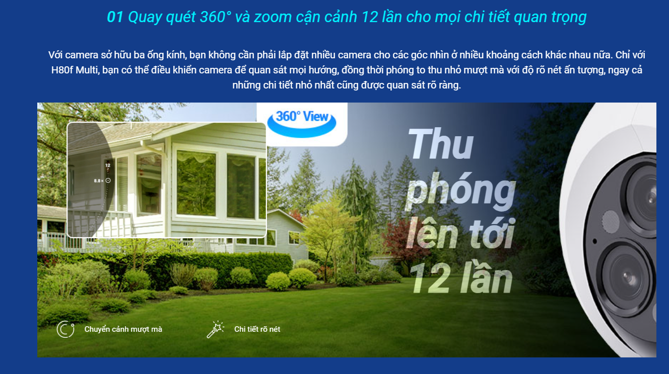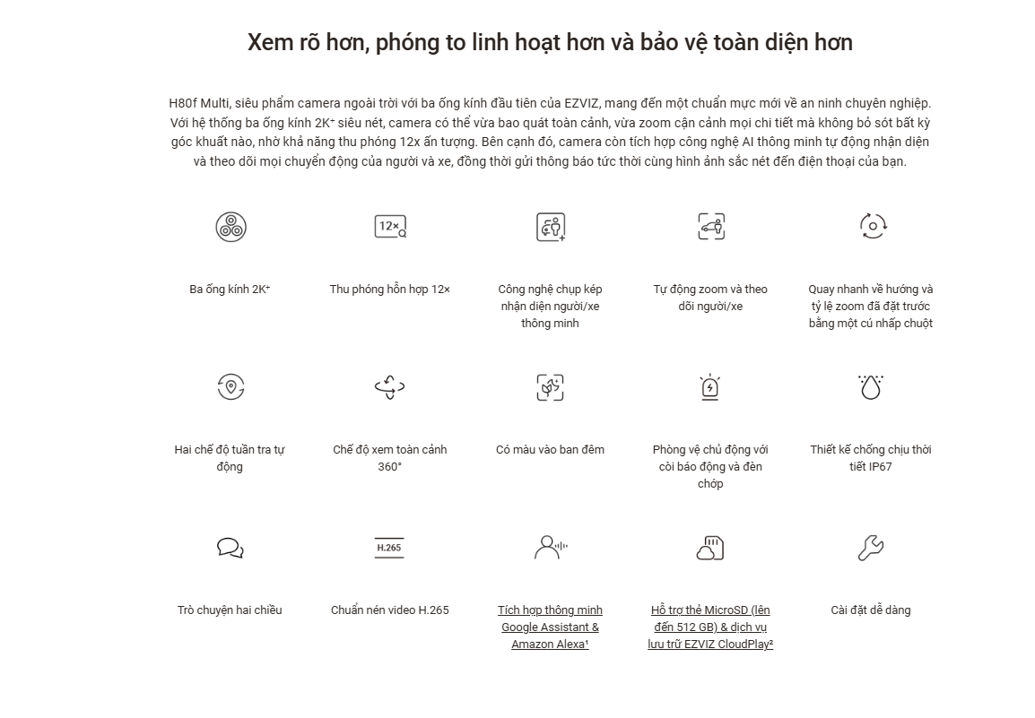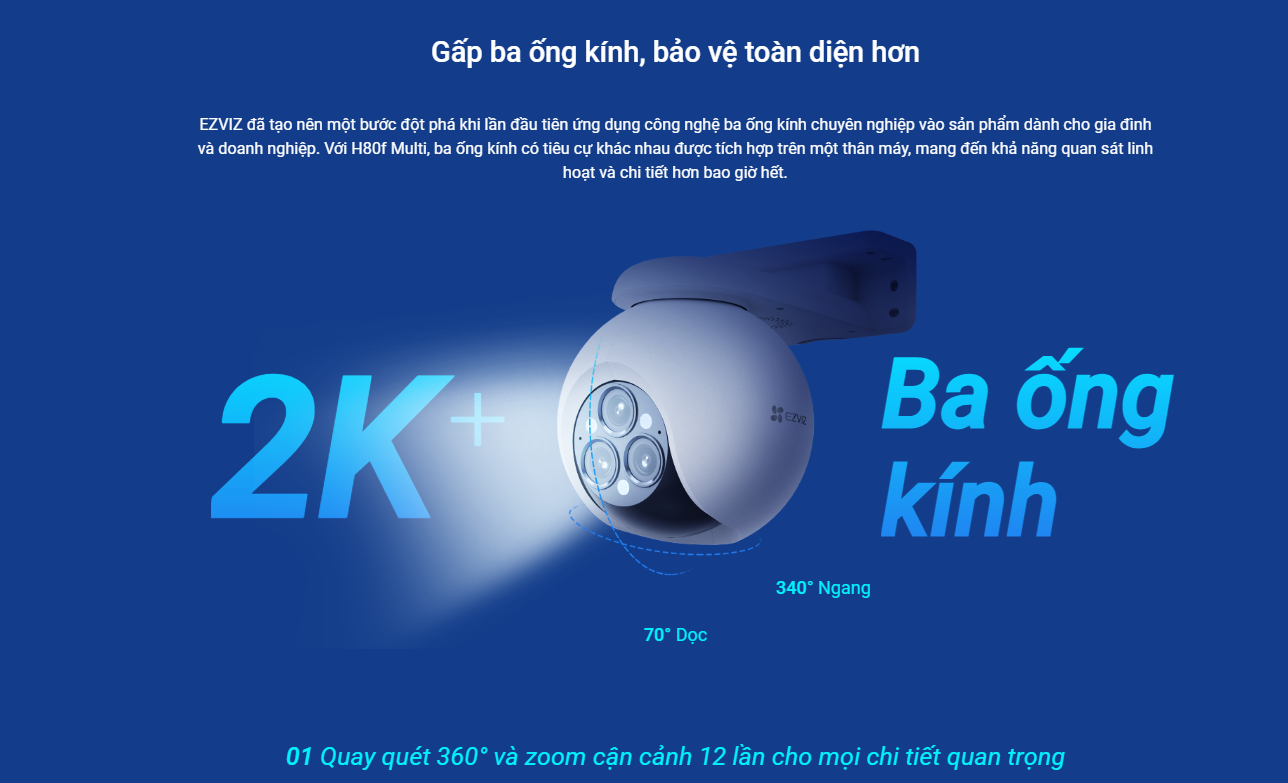 Thông số kỹ thuật camera WiFi EZVIZ H80F 2K 4MP (3 Ống kính, Zoom 12X)