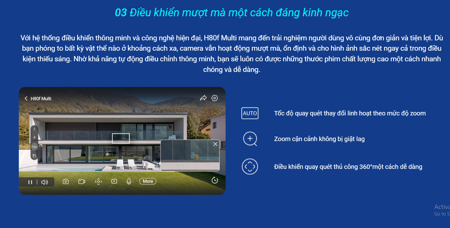 – Góc quay ngang 340 độ , góc xoay dọc 70 độ