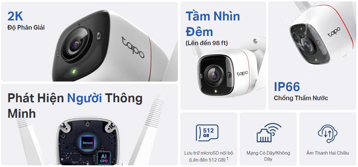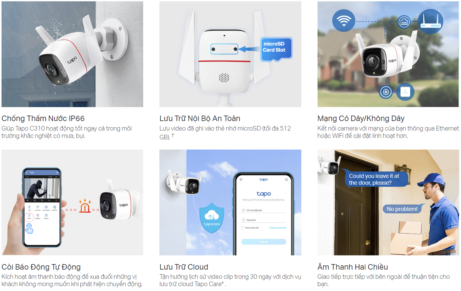 Camera WiFi Ngoài Trời TP-Link Tapo C310 | Ghi hình 2K 3MP | Âm thanh 2 chiều | Cảm biến hồng ngoại | Bảo hành 2 năm | Hàng Chính Hãng