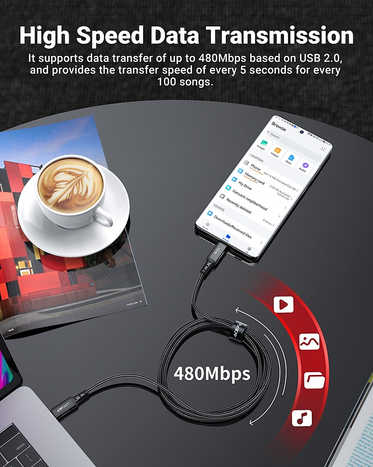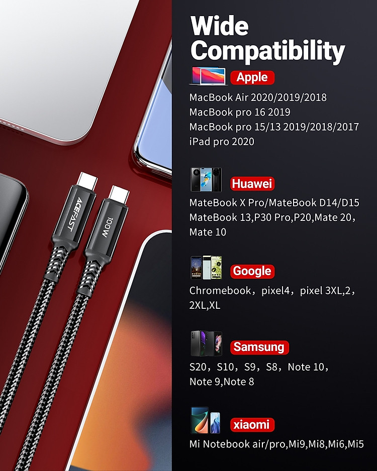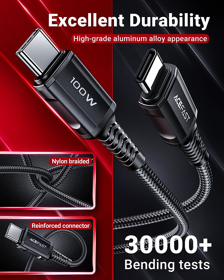 Cáp ACEFAST C4-03 Type C to Type C, dòng điện lên đến 5A, chiều dài 2m