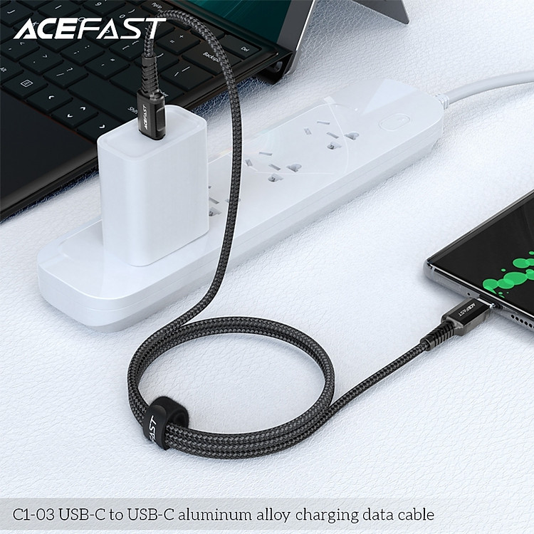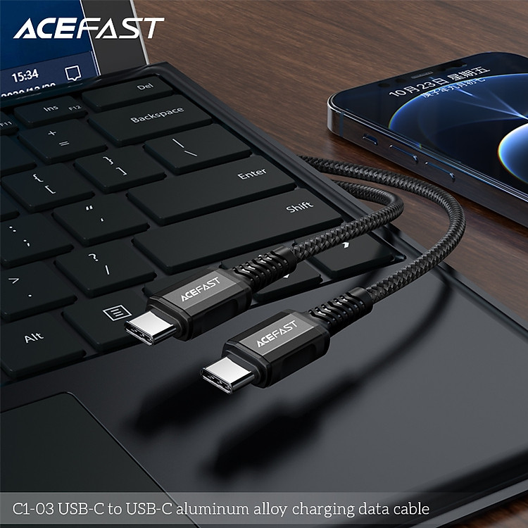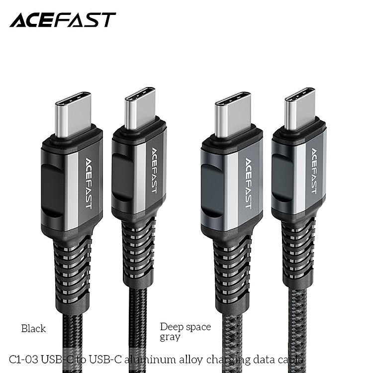 Cáp sạc ACEFAST C1-03 Type C to Type C, dài 1.2m, đầu nối hợp kim nhôm, hỗ trợ sạc tối đa 20V / 3A - 60W cho máy tính xách tay và sạc nhanh 3A cho điện thoại Android