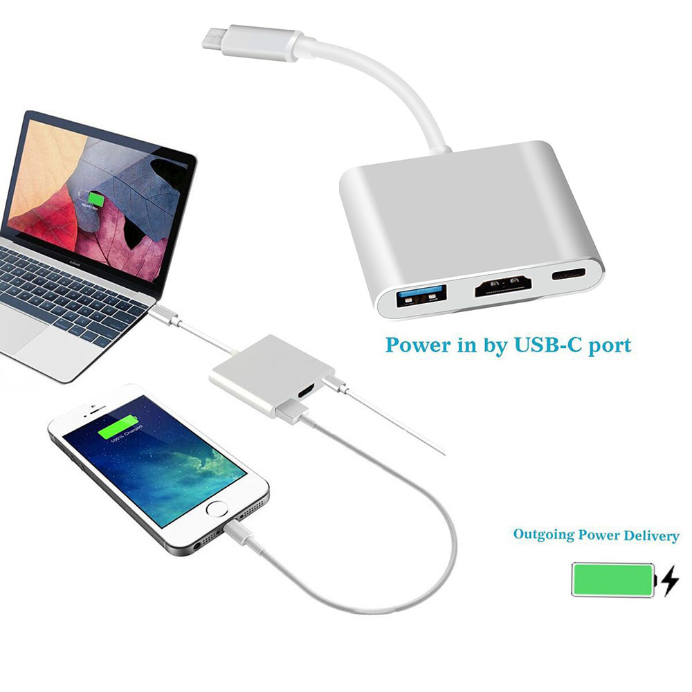 The USB-C HDMI Digital AV Multiport Adapter lets you connect your MacBook to an HDMI monitor projector display, while also