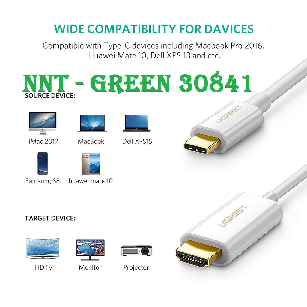 Mô tả : Cáp USB type C sang HDMI Ugreen 30841 - Ugreen USB-C sang HDMI hỗ trợ 4K, 3D Ugreen 30841 được thiết kế để kết nối các máy tính phát hành mới như 2015 MacBook, Google Chromebook Pixel hay ASUS Zen AiO PC với một HDTV hiện có, màn hình hiển thị, hoặc máy chiếu với giao diện HDMI độ phân giải lên đến 1080p.
