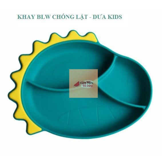 Giới thiệu [Cao Cấp] Khay Ăn Dặm Silicon Chống Đổ Cao Cấp Có Đế Hút Chân Không kèm thìa dĩa