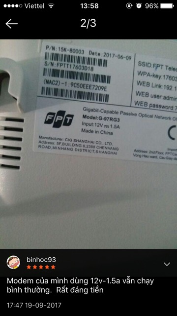 + Lưu ý: Lấy nguồn từ sạc dự phòng có cổng ít nhất là 1.5A trở nên. Chỉ sử dụng được cho modem 12V1A hoặc 9V1A. Đã có bạn dùng 12V 1.25A chạy tốt nhưng không chắc chắn 100% modem nào cũng chạy ok. Còn với cái dải điện áp khác, dòng điện lớn hơn như 1.5A, 2A đại đa số đều không chạy được các bạn nhé.