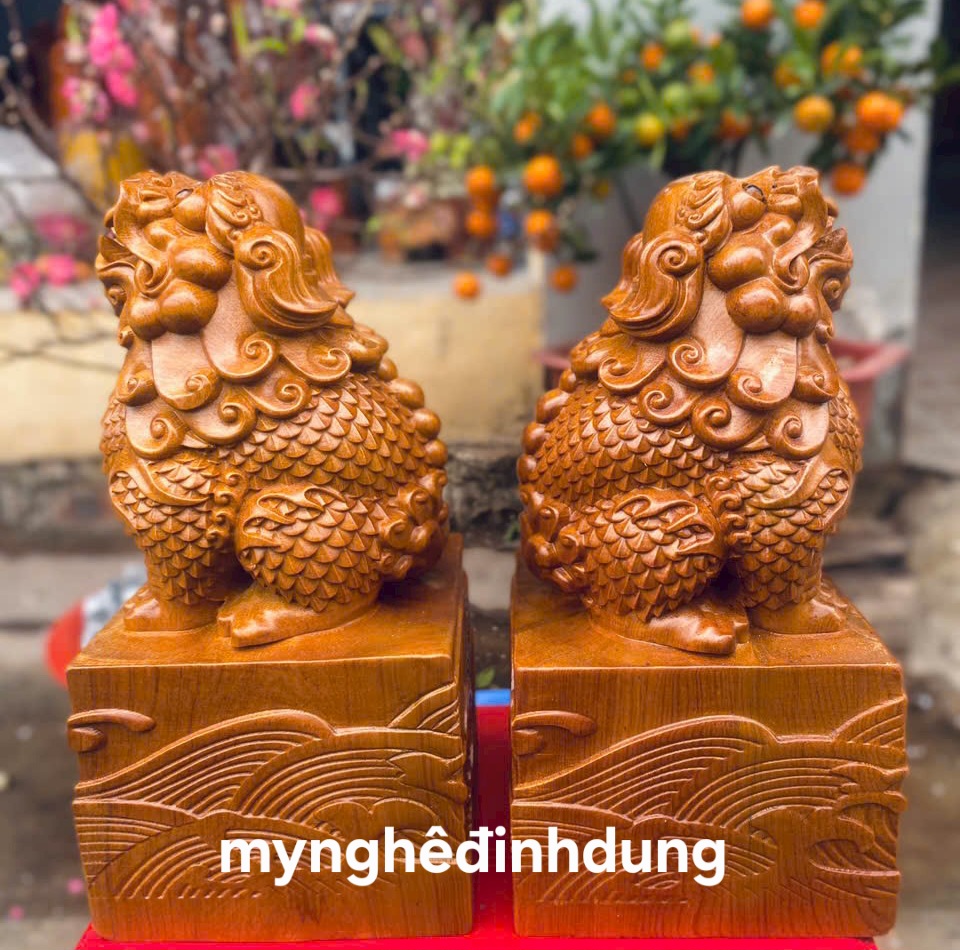 _ Cặp nghê phong thủy cầu tài lộc được làm bằng chất liệu gỗ bách xanh liền khối tự nhiên 100%