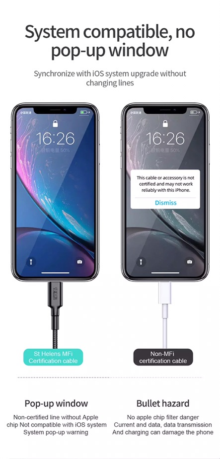 Cổng kết nối Lightning đạt chứng nhận MFI từ Apple - Ngoài ra cáp còn được thiết kế đảm bảo tốc độ kết nối nhanh và hiệu suất cao có thể khi kết nối các thiết bị Apple.