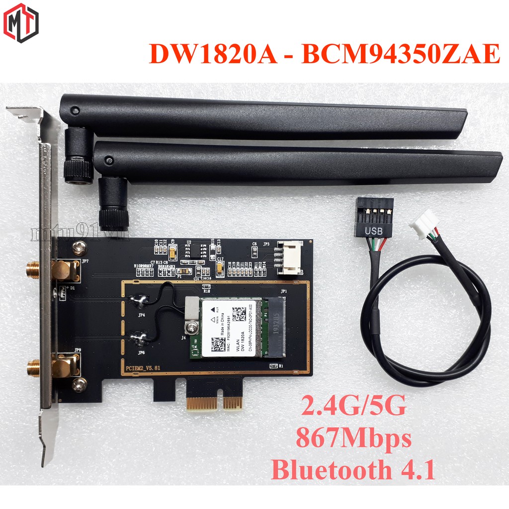 Thông số kỹ thuật: + Chipset: BCM94350 | BCM94352 | BCM94360 + Chuẩn kết nối: 802.11bgn / ac + Băng tần: 2,4Ghz: 300Mbps & 5.4Ghz: 867Mbps + Hỗ trợ Airdrop / Handoff trên MacOS: có + Ưu Tiên Dùng cho Máy bàn, PC chạy Hackintosh, các Hệ Điều Hành khác chạy song song vẫn hoạt động tốt