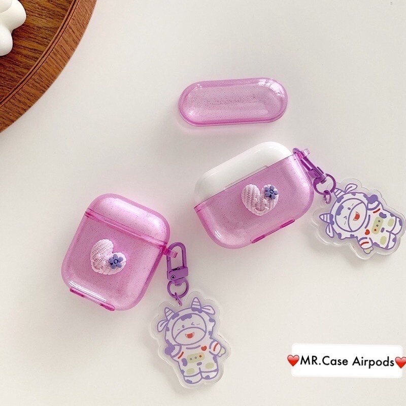 Giới thiệu Case Airpods 1/2 /Pro Vỏ Ốp Tai Nghe Màu Tím Trơn Tim Nổi ( kèm móc bò sữa )?- Mr.Case AirPods