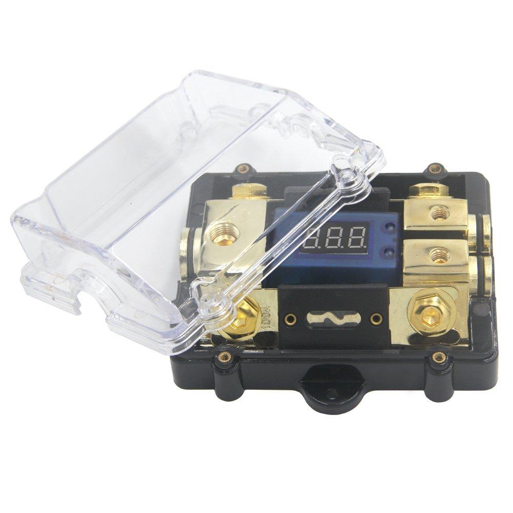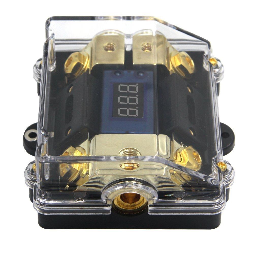 Giới thiệu Cầu chì ANL 100A chia nguồn ô tô 1 ra 2 tự ngắt có bảng hiển thị điện áp Led mạ vàng 24K cao cấp