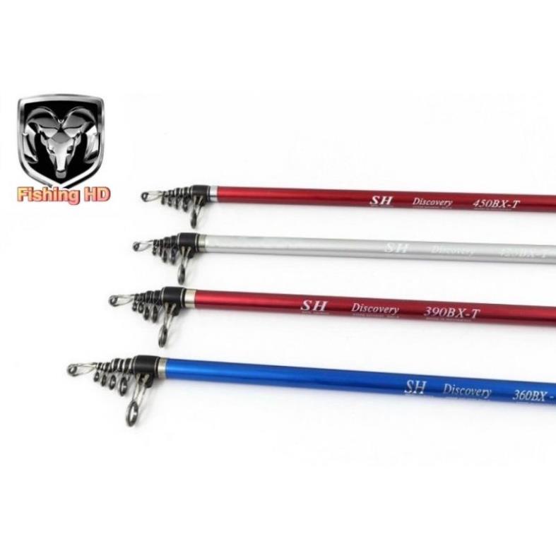 Thông số cần câu lục SH Discovery BXT Xuất xứ: Indonesia Chất liệu: 99% cacbon xoắn Chiều dài: 3,6m - 3,9m - 4,25m - 4,5m Thu gọn: 125cm Độ cứng: 30BX-T thíc hợp câu xa bờ 30-40m Đường kính ngọn: 3.0mm Đường kính gốc: 24mm Trọng lượng: 420g Tải cá: 7-10kg Khoen 4 chân chắc khỏe đầu bu chống xoắn cước.