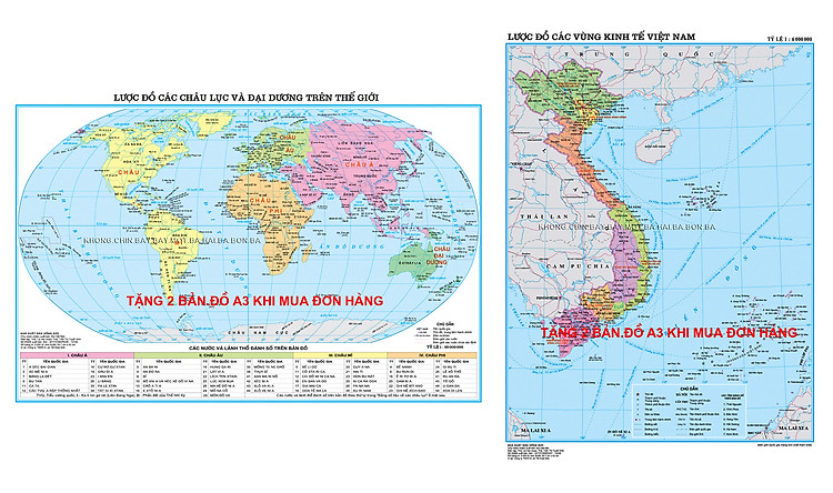 Quý khách được tặng 2 tờ BĐ Việt Nam A3 và Thế giới A3 khi mua 1 đơn hàng
