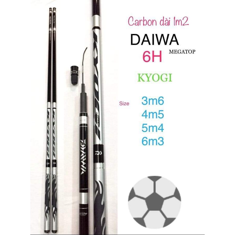 Thông số của cần câu tay Daiwa Kyogi 6H Thương hiệu: Daiwa Độ cứng: 6H Chất liệu: Carbon xoắn Màu sắc: Bạch kim Chiều dài: 3m6, 4m5, 5m4, 6m3 Trọng lượng: 140g, 200g, 250g, 330g Thu gọn: 1m1 Ngọn đọt: 1,6mm Đường kính gốc: 2,5cm Nhấc tĩnh: 2-3kg Tải cá: 5-8kg