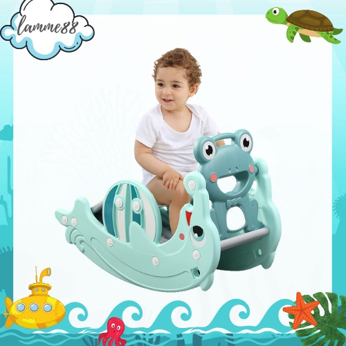 Cầu trượt bập bênh 3 trong 1 hình cá heo và ếch bằng nhựa dành cho trẻ từ 1 tuổi 9Baby