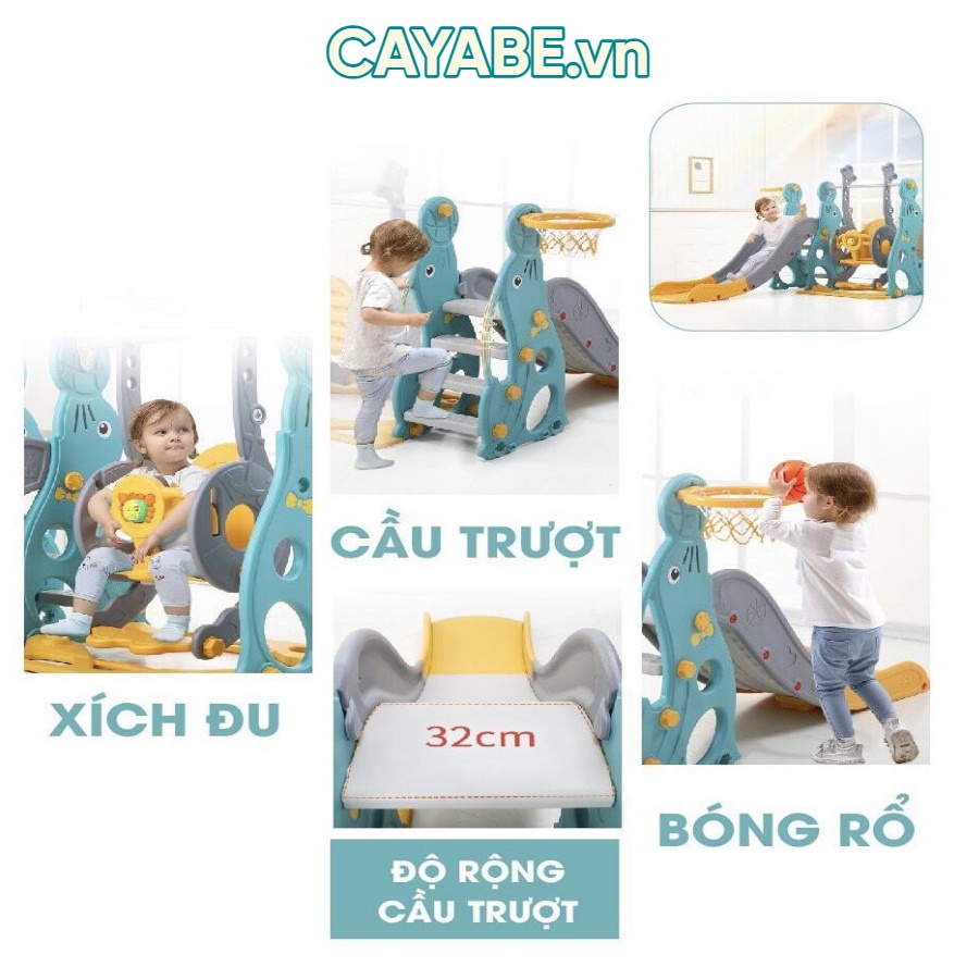 Giới thiệu [CAYABE]: Cầu trượt - xích đu - cột bóng rổ hải cẩu, sư tử, tên lửa cho bé xanh lá - xanh dương - hồng