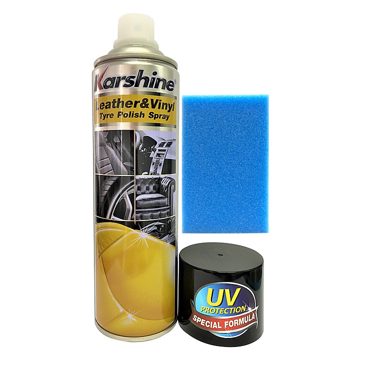 Chai xịt chăm sóc và bảo dưỡng nội thất ô tô Karshine 500ml với công thức đặc biệt đạt tiêu chuẩn Châu Âu, sẽ giúp duy trì lâu dài độ bền, bóng sáng và luôn như mới cho các đồ dùng bằng da và giả da. Sản phẩm giúp bảo vệ da khỏi bị bạc màu, bị khô do tác động của ánh nắng mặt trời, bụi bẩn và tránh bụi bẩn bám vào bề mặt da đồng thời cung cấp độ ẩm cho da khiến cho đồ dùng luôn mới. Sản phẩm có thể được sử dụng cho đồ dùng bằng da, giả da, dàn táp lô, cảng xe, bánh xe, nhựa, gỗ, ống nhựa và dây điện trong cốp máy và các vật liệu khác.