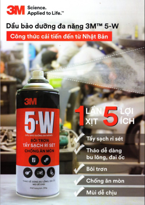 Chai xịt tẩy rửa, bôi trơn và chống rỉ sét 3M 5W có khả năng chống rỉ sét và bôi trơn.