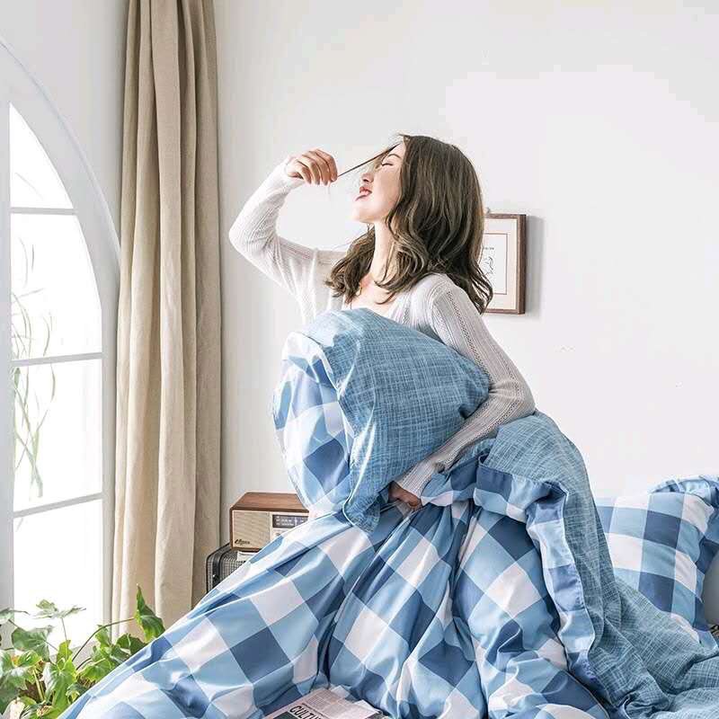 Giới thiệu Bộ Chăn Ga Cotton Poly mẫu kẻ ô vuông xanh da trời