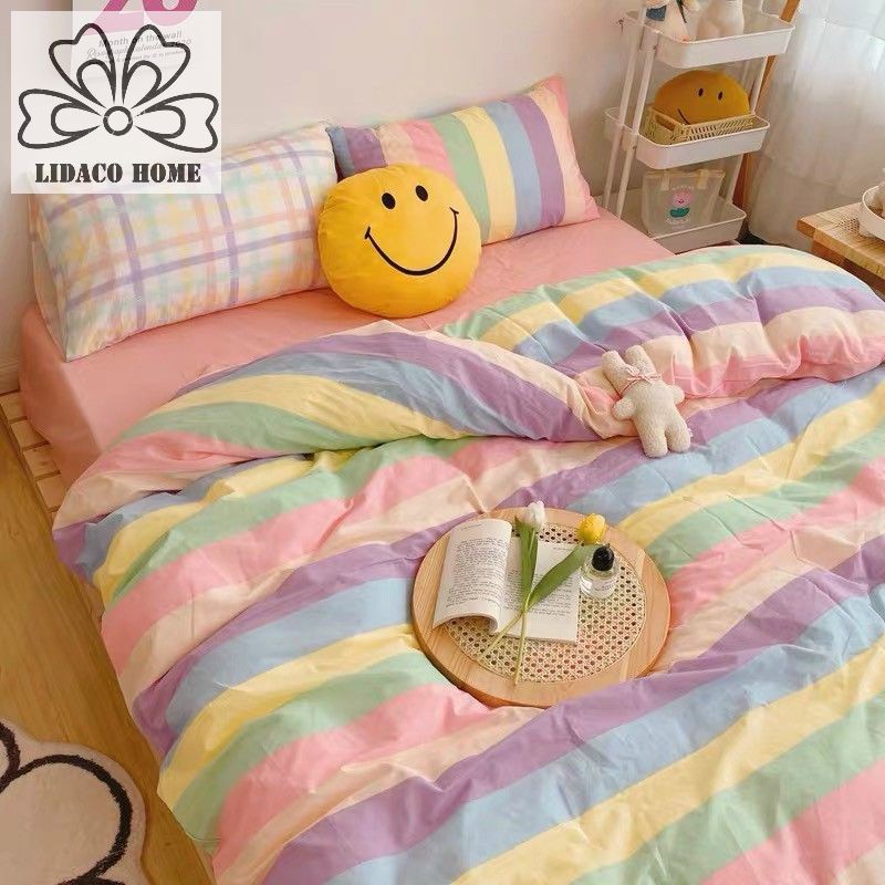 Giới thiệu Bộ chăn ga gối cotton Lidaco - Kẻ Ngang Sắc Màu ( SP001361)