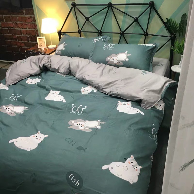 Giới thiệu Bộ chăn ga gối cotton Lidaco - Mèo Béo Xanh (SP001005)
