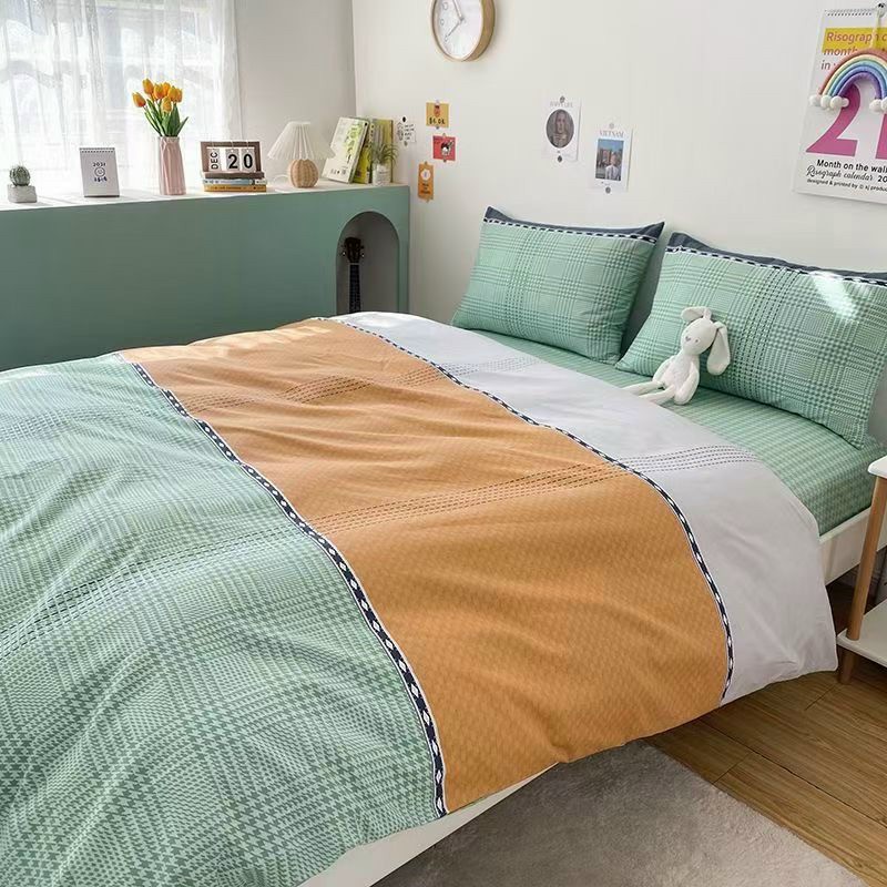 Giới thiệu Bộ chăn ga gối cotton organic 4 món kẻ xanh - DREAMHOME