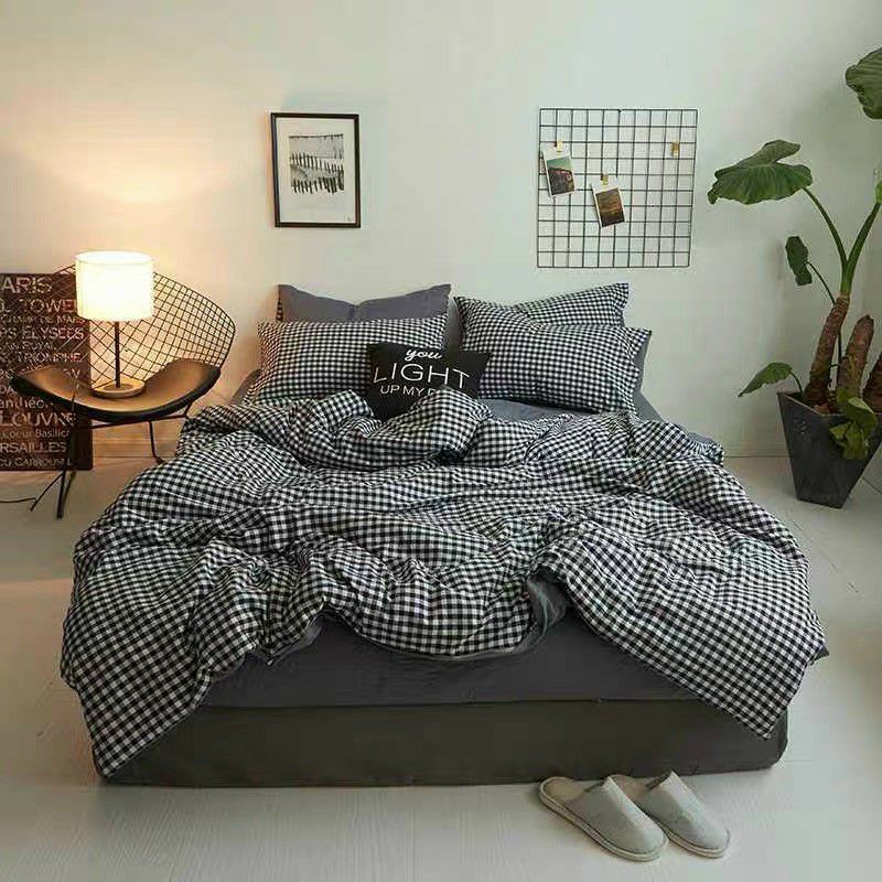 Giới thiệu Bộ Chăn Ga Gối Cotton Poly Caro Kẻ Xám Nhập Khẩu