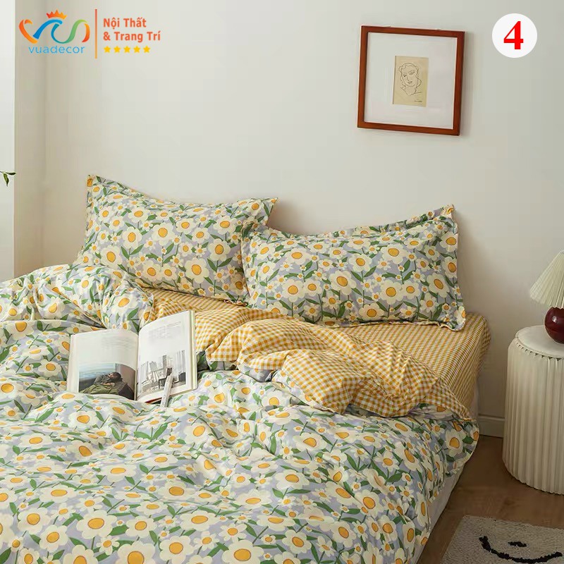 Giới thiệu Chăn Ga Gối Cotton VUADECOR Hoa Tiết Hoa Lá Trang Trí, Decor Phòng Ngủ Phong Cách Hàn Quốc cao cấp ( không ruột)