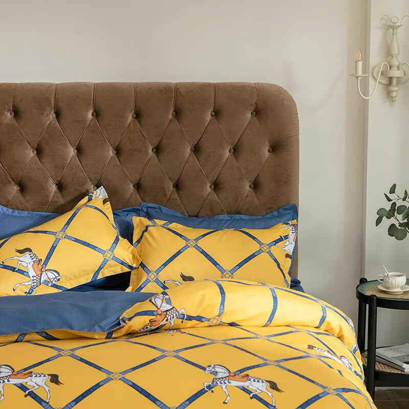 Giới thiệu Bộ chăn ga gối drap giường chất cotton poly họa tiết ngựa kẻ vàng