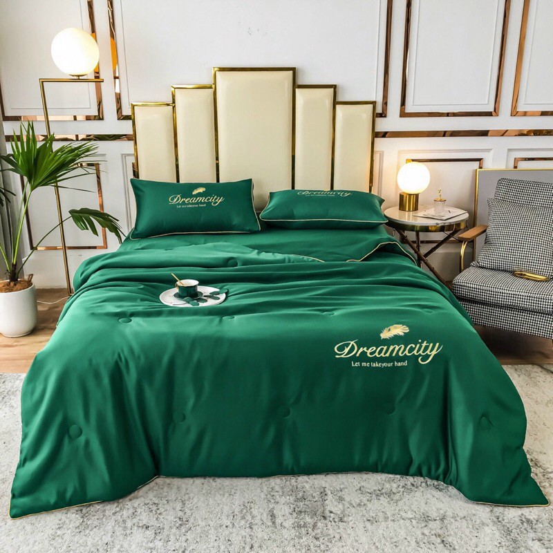 Bộ Chăn Ga Gối Lụa Thái Phi Bóng Chăn Chần Dream City Full Set 4 Món Hàng Cao Cấp