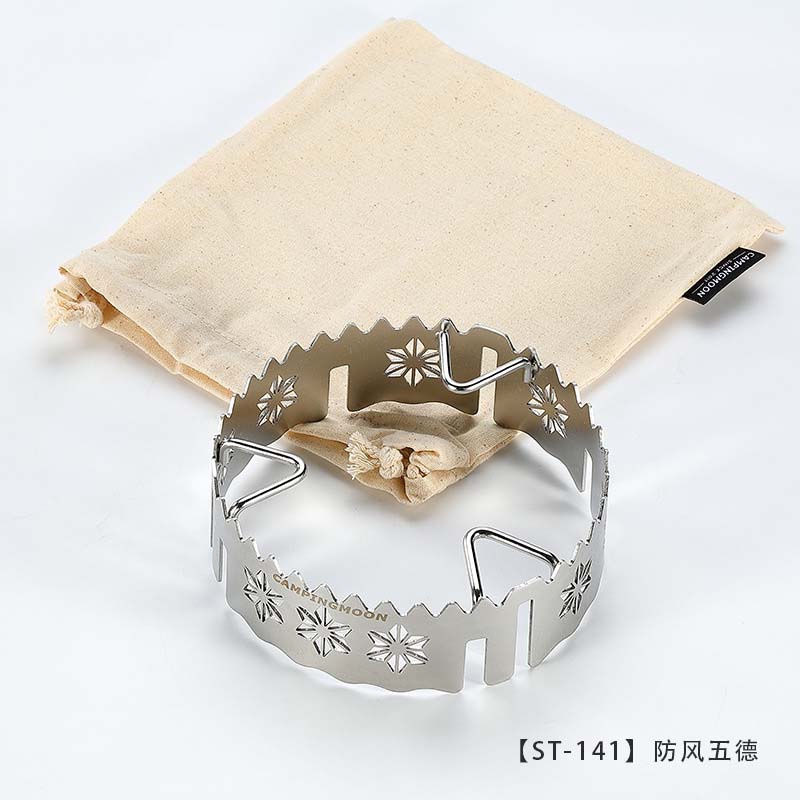 Chắn gió bếp gas dã ngoại Campingmoon ST-141 nhỏ gọn, chất liệu thép không gỉ, thiết kế chạm khắc rỗng chống gió và cung cấp đủ oxy 360° giúp nhiên liệu được đốt cháy hoàn toàn tiết kiệm nhiên liệu tiêu hao và đun nấu nhanh hơn. Chắn gió sử dụng được với hầu hết tất cả các mẫu bếp gas du lịch trên thị trường hiện nay.
