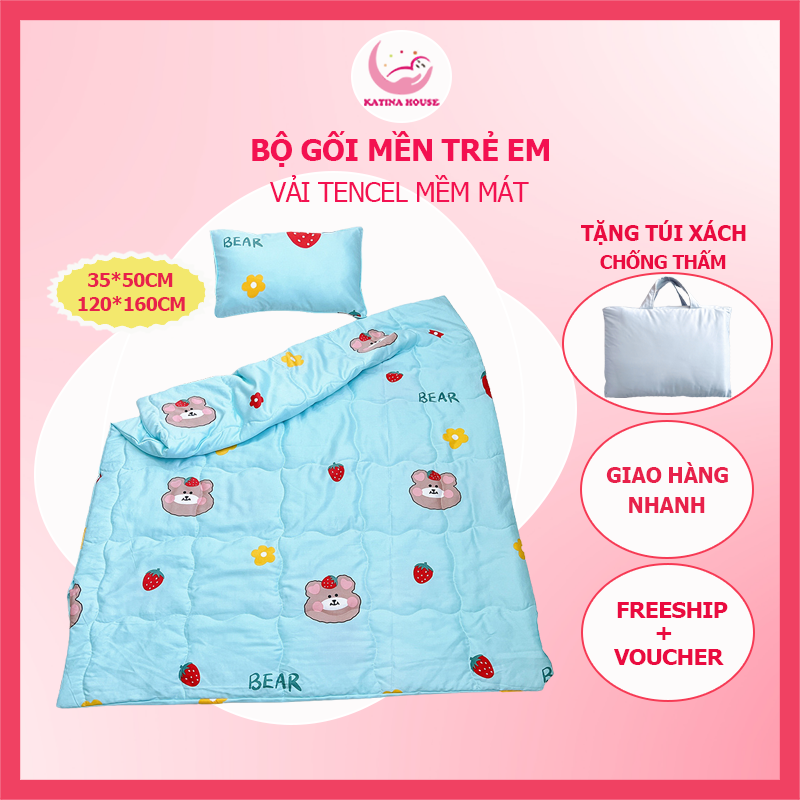 Bộ chăn gối cho bé 5-10 tuổi Katina House, vải tencel siêu mềm mát, mịn êm. Đó là điểm nổi bật của dòng sản phẩm chăn gối cho bé nhà Katina House mà ba mẹ không nên bỏ lỡ ạ.