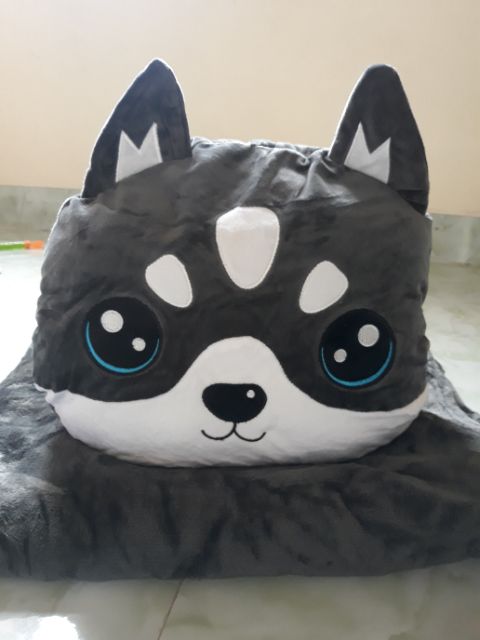 Giới thiệu Bộ chăn gối văn phòng hình thú tròn đáng yêu cún đen mặt trắng