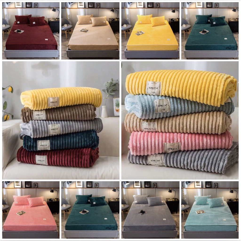 Bộ Chăn Ga Gối Tuyết Kẻ Tăm Thu Đông Mềm Mịn Nhập Khẩu Full 9 Màu (Kích Thước 2mx2m3 Nặng 1kg4) ------------------------------------------------- Hàng nhập khẩu nguyên chiếc ⭐️Chăn được sử dụng chất liệu lông tuyết mềm mịn, có đặc tính nhẹ nhàng, mềm mại và khả năng giữ nhiệt cực tốt, do đó đặc biệt thích hợp sử dụng để giữ ấm trong thời tiết lạnh giá của mùa đông hoặc mùa hè khi nằm phòng điều hòa. - Cả 2 bề mặt chăn đều mềm mịn, với lớp lông tuyết ngắn, mềm mại, bền đẹp, không bai, k rão, k xù lông, vón cục hay biến dạng qua thời gian sử dụng, do đó an toàn với sức khỏe và làn da của bé cũng như của cả gia đình bạn. - Đường kim mũi chỉ cẩn thận, tỉ mỉ làm nên nét thẩm mĩ, không tạo cảm giác cộm ngứa. ⭐️Thiết kế tiện dụng 🌟Chăn với kích thước rộng rãi, 2mx2m3 🌟Nặng 1,4kg 🌟Giặt tay, giặt máy thoải mái -------------------------------------------- Bộ Ga chun Vỏ Gối Gồm : - Một ga chun đã bo chun m6x2m , m8x2m, 2mx2m đệm dầy 15cm - Đôi vỏ gối đầu 45cm x 65cm đồng màu ----------------------------------------------------- * Sản phẩm giống 100% như mô tả. * Miễn phí hoàn trả trong vòng 3 ngày (kể từ ngày nhận hàng), kể cả lý do không thích nữa. * Giao hàng trên toàn quốc theo quy định của Shopee. * Shop hỗ trợ đổi size trong vòng 3 ngày khi sản phẩm vẫn còn nguyên tem/mác