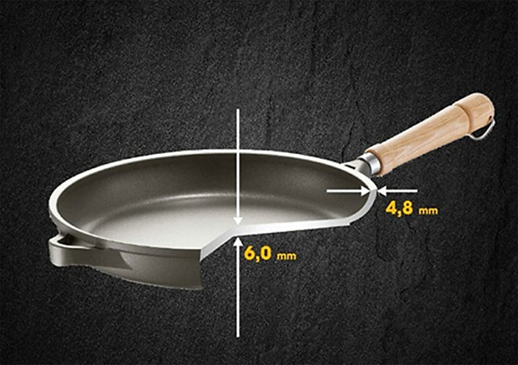 Bề mặt đáy được mài phẳng đảm bảo tiếp xúc tối ưu với mặt bếp để nhiệt lượng được phân phối đều trên khắp đáy chảo. Lớp đáy luôn phẳng, không bị biến dạng nhờ vì lớp đáy đã được tối rèn, nung nóng lên tới 200 ° C và nhúng ngay vào nước lạnh liên tục trong 50 lần.
