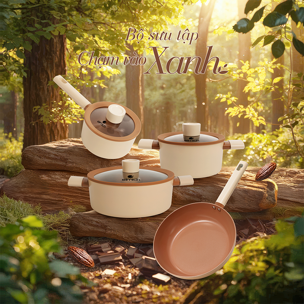 Với Mocha, “chạm vào xanh” là tìm thấy thiên nhiên trong những điều bình dị: màu nâu gợi nhớ đất mẹ, âm thanh lách tách khi nấu, hương thơm lan tỏa trong gian bếp, và sự an tâm từ lớp chống dính an toàn đạt chuẩn Châu Âu.