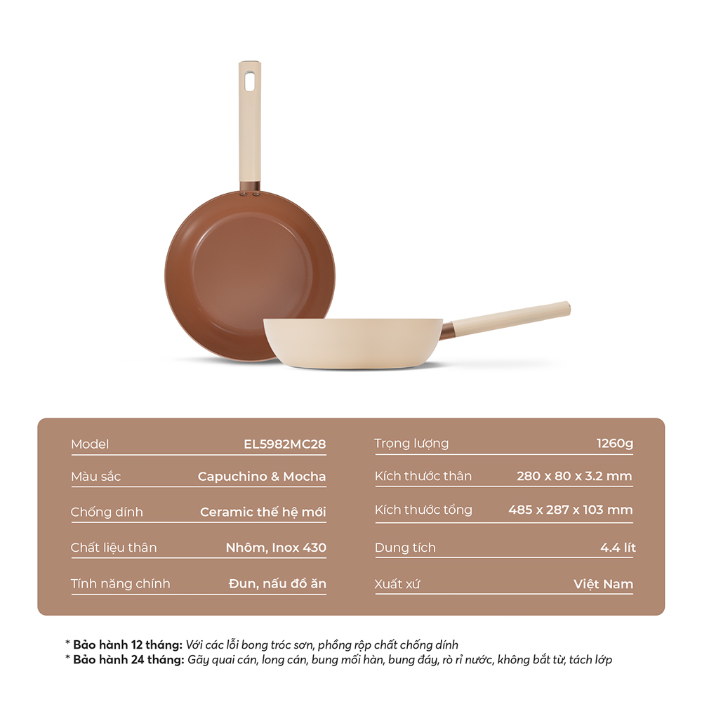 Thiên nhiên đôi khi đến từ những điều giản dị nhất – một sắc nâu trầm ấm, một cảm giác an tâm khi nấu nướng cho gia đình. Mocha được tạo nên không chỉ để làm đẹp cho căn bếp, mà còn để chăm chút từng trải nghiệm: lớp chống dính bền bỉ, tay cầm chắc chắn, bề mặt dễ vệ sinh và đáy từ tiết kiệm năng lượng.