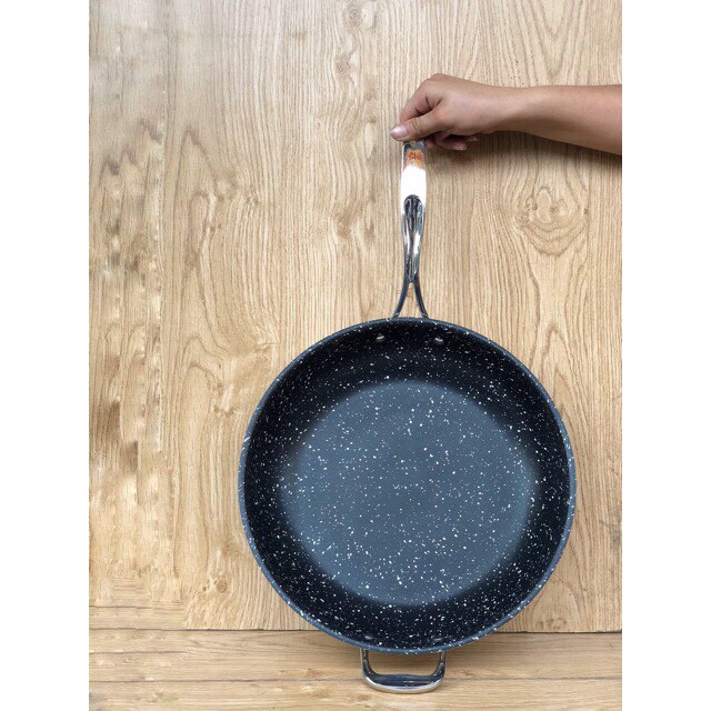Chảo fivestar 3 lớp 30cm-đun từ Chảo cỡ trung sử dụng phổ biến cho mọi gia đình cỡ 24cm, 26cm. Phù hợp với mọi món chiên có kích cỡ vừa phải: Chiên cá thịt cắt khúc, chiên đậu, nem...