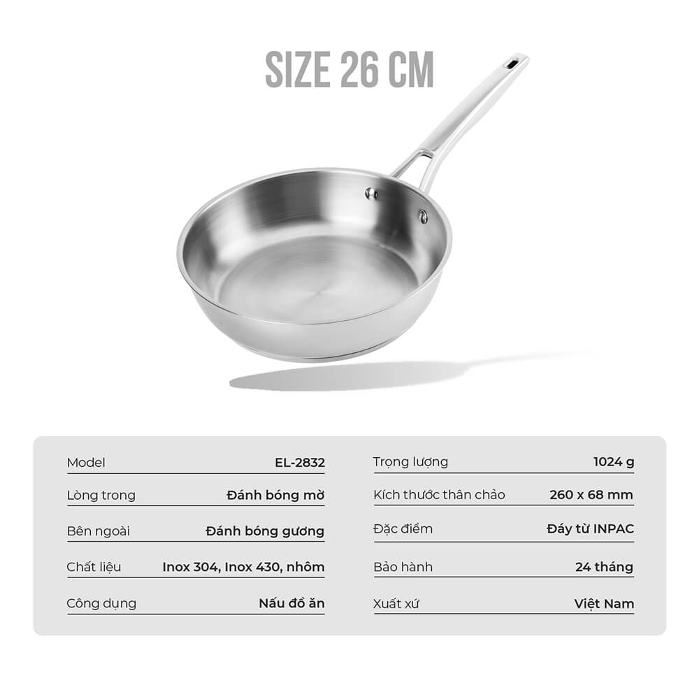 Chảo inox 304 đáy Inpac Elmich EL-2830 EL-2831 EL-2832 EL-2833, Hàng chính hãng, sử dụng trên mọi loại bếp - JoyMall