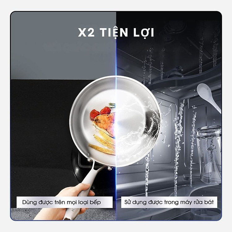 Bền bỉ trọn đời: Chảo có khả năng chống trầy xước vượt trội, có thể sử dụng dụng cụ nấu ăn bằng kim loại mà không sợ hỏng chảo.