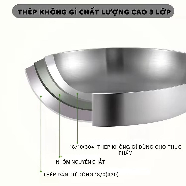 Lớp trong cùng (tiếp xúc thực phẩm): Inox 304 (18/10)